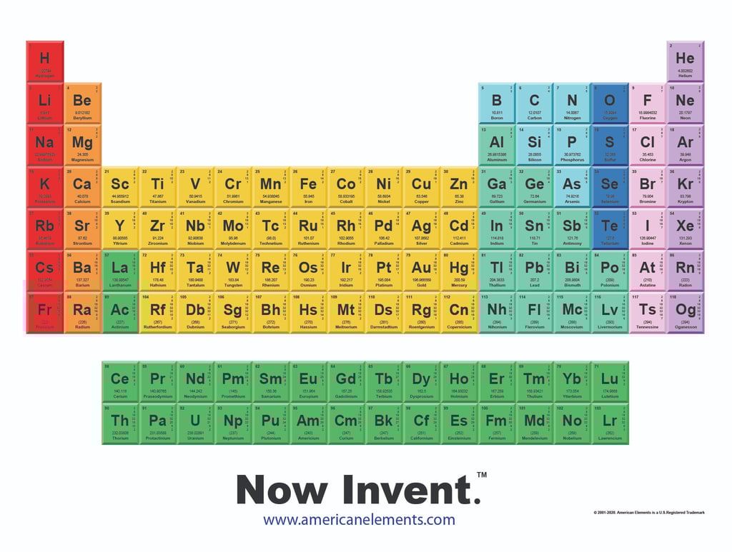A hundred years after the discovery of the first element, the chemist Mendeleev presented his periodic table of elements, organizing the 60 known elements by atomic mass and leaving empty spaces where he predicted the existence of yet undiscovered elements.
